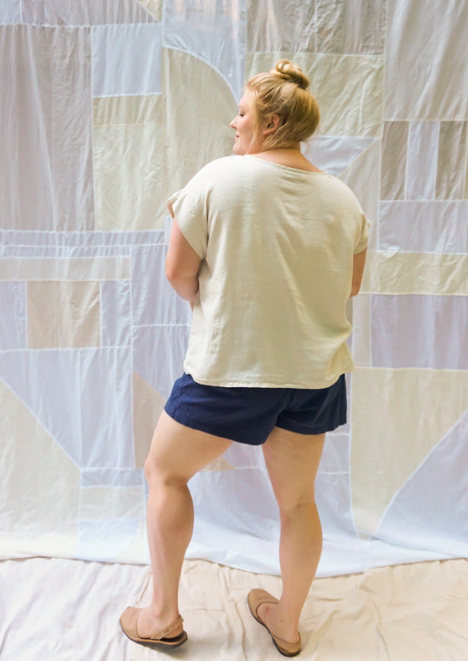 Hemp is here! Your everyday go-to top in lightweight hemp, this top is made with french seams, bias binding, a cuff sleeve and slight flare in the body. This easy to wear top is a no-brainer to build an outfit around for any occassion. This garment is intended to fit loosley, so add 2-3 inches to your bust measurement when choosing your size. Need a custom length or arm opening? Include your desired measurement in the comments box at checkout (ie: "Custom Length: 20", or "Custom Cuff: 15")